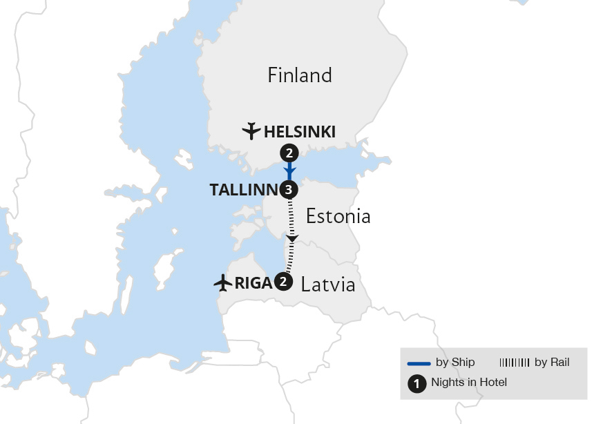 Fly to Helsinki to begin a discovery of three unique countries on the shores of the Baltic Sea. Discover the charms of innovative Helsinki before sailing to Tallinn to uncover the fairytale sights of Estonia's timeless capital. This scenic exploration concludes amid the colourful cobbled streets of Riga, the picture-perfect capital of Latvia,...