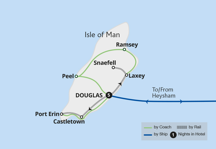 Delve into Celtic legacy as you explore the Isle of Man, travelling on vintage railways, discovering ancient towns and embracing the relaxed lifestyle. Staying in the picturesque capital of Douglas, each day brings something new - from wild landscapes to fascinating history - as you tour famous sights including The Old House of Keys,...
