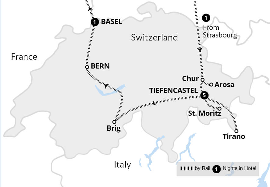 Enjoy Switzerland's warm hospitality and astounding landscapes from traditional hotels in historic Chur and idyllic Täsch, soaking up dramatic scenes of soaring mountains and glaciers aboard two iconic trains. Cross the Alps on the Bernina Express, admiring glacier views enroute to Poschiavo. The show continues as you bask in the alpine ...
