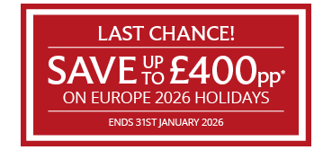 Save up to £400pp on Europe 2026 holidays, when you book by 31st January 2026.