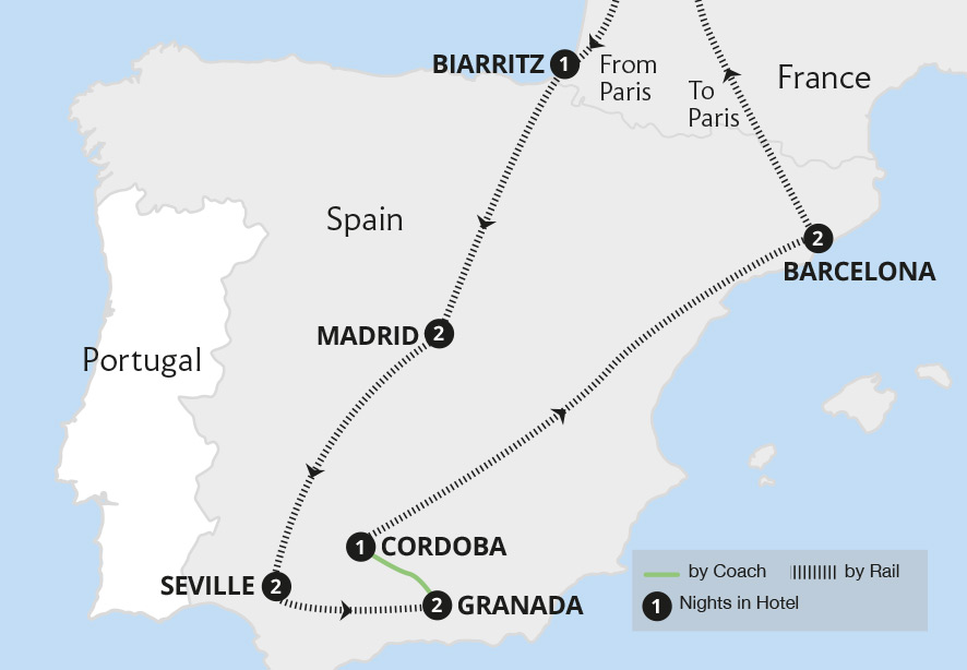 Discover the rich cultural heritage and artistry of Spain. On a journey through iconic cities, we travel from the capital of Madrid, into Moorish Andalucía and Barcelona. We explore Granada's World Heritage Alhambra palaces and gardens, Seville's vibrant landmarks including its historic cathedral, and wander through Córdoba's magnificent Mezquita...
