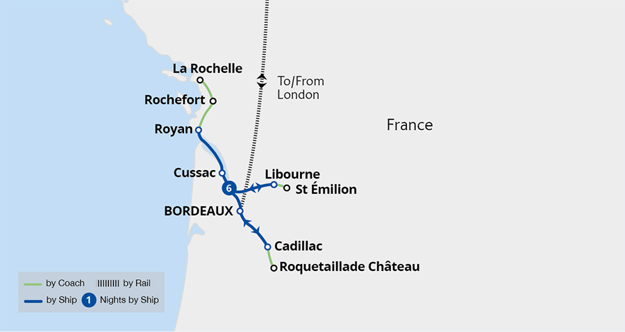 Experience the idyllic landscapes of the Bordeaux wine region on a leisurely river cruise on the Garonne and Dordogne. Discover Bordeaux's 18th-century grandeur and cruise to medieval St Émilion, where ancient caves and Europe's largest monolithic church await. Explore the renowned Médoc wine route, visit the prestigious Rochefort and picturesque...