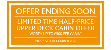 Half-price top deck cabin upgrades worth up to £500 per cabin on selected 2026 sailings, when you book by 15th December.