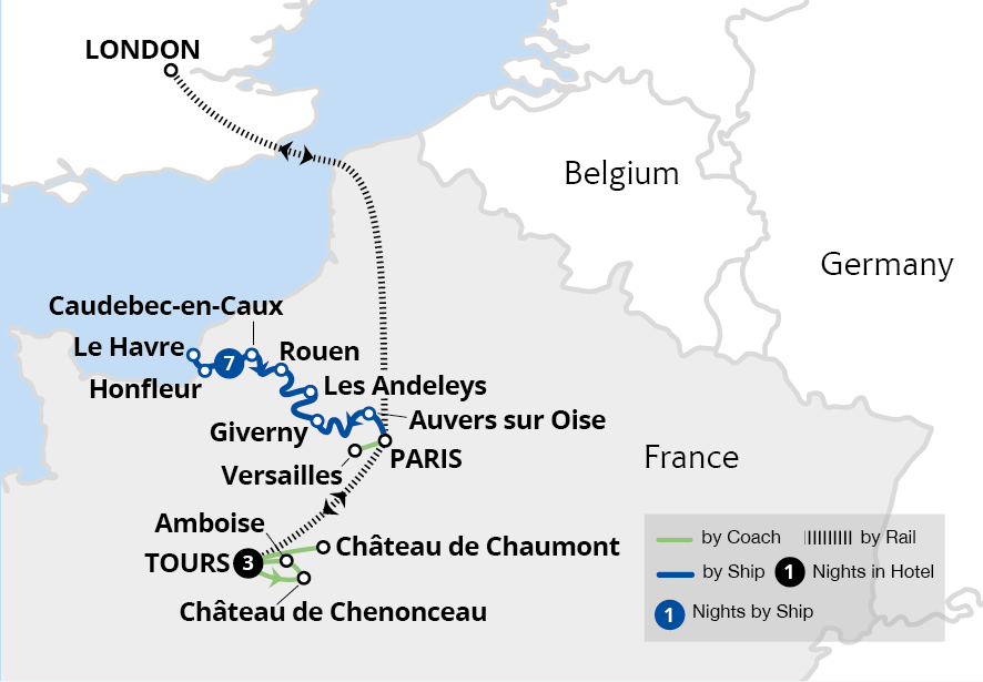 Explore some of the best-loved châteaux of the Loire Valley, then cruise the Seine, discovering the gems of Paris, Rouen and Honfleur. Explore the iconic Château de Chenonceau, Leonardo da Vinci's Clos Lucé, and Château de Chaumont, before boarding the MS Amadeus Diamond for a leisurely cruise down the Seine. From the charm of Auvers sur...