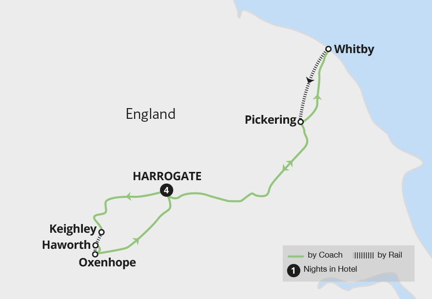 Discover the beauty of Yorkshire on this picturesque rail getaway. Home to timeless towns, sweeping rural landscapes and rich architectural heritage, this is a region full of character and charm just waiting to be explored. Stay in the elegant spa town of Harrogate and visit the coastal resort of Whitby, before enjoying a nostalgic journey on the...
