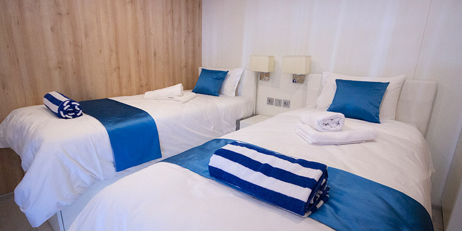 The MV San Antonio is an intimate 18-cabin luxury yacht, specifically designed for sea cruising. The stylish cabins are perfect for a good night's sleep - or for taking some much-needed 'me' time whilst sailing, and come equipped with air-conditioning, an LCD television with English channels, and comfortably sized bathrooms.